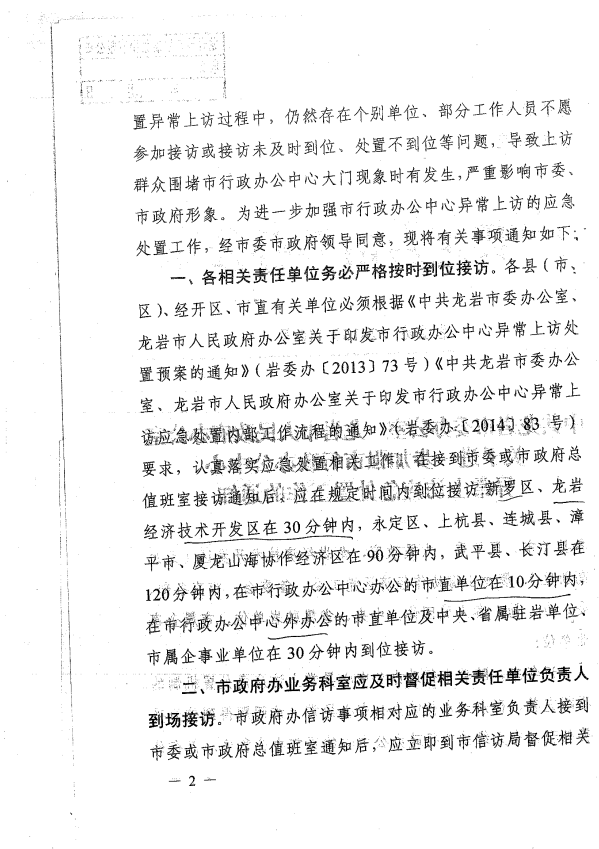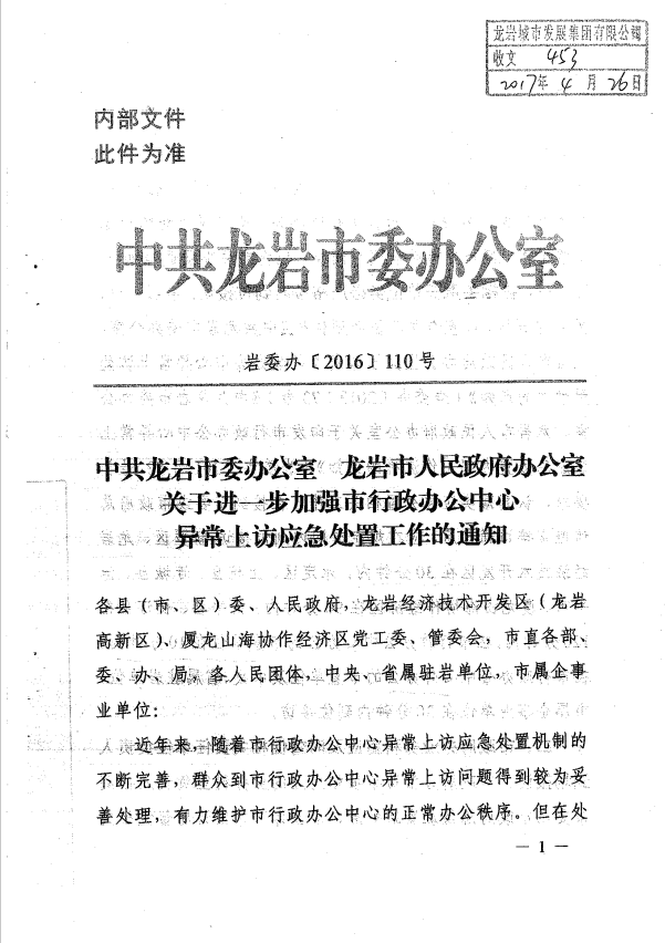 市委辦關(guān)于進(jìn)一步加強市行政辦公中心異常上訪(fǎng)應急處置工作的通知(巖委辦【2017】110號)