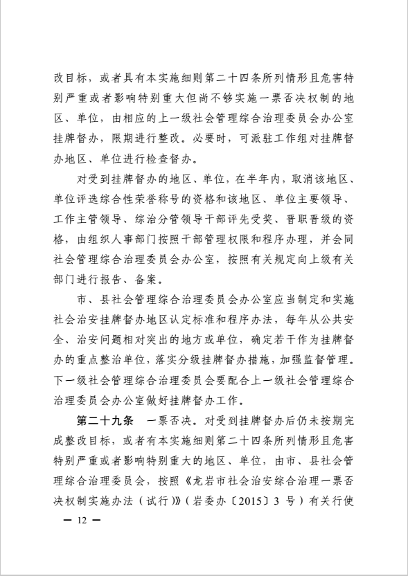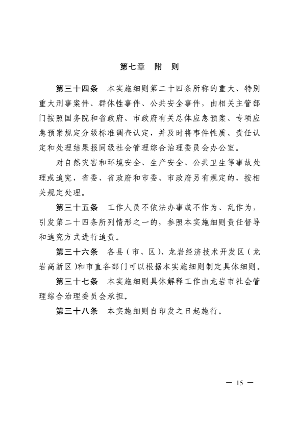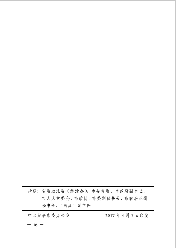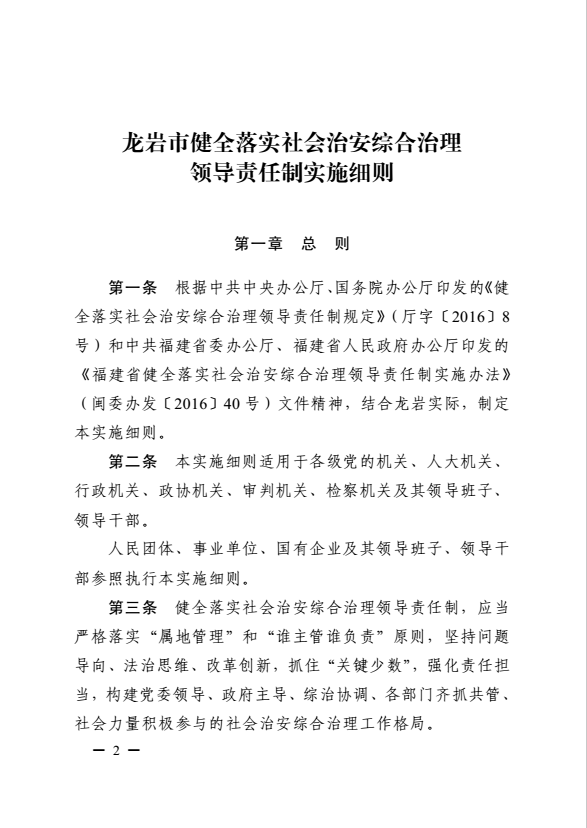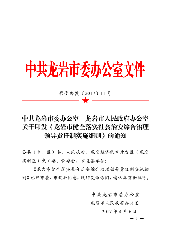 龍巖市健全落實(shí)社會治安綜合治理領(lǐng)導(dǎo)責(zé)任制實(shí)施細(xì)則(巖委辦發(fā)【2017】11號)