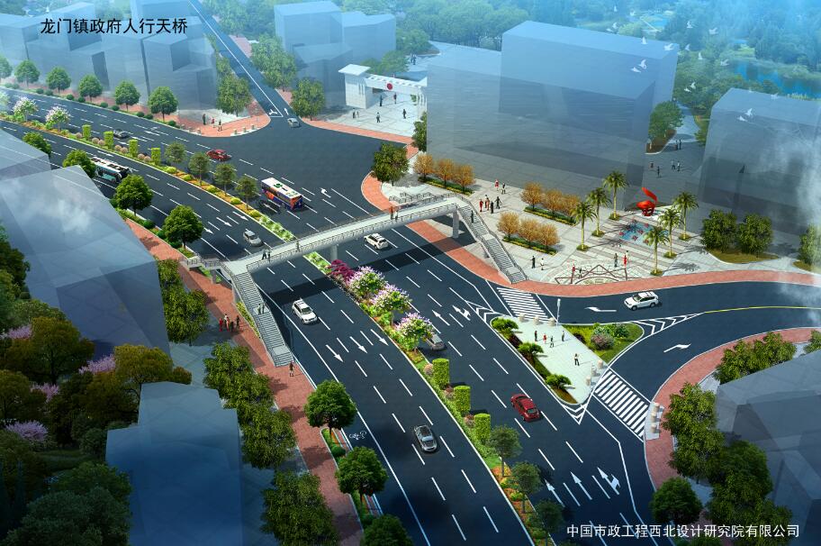 龍門(mén)鎮人民政府人行天橋位于羅龍西路龍門(mén)鎮人民政府西側約80米處,采用鋼結構連續梁,腹板為圓弧形,主梁全長(cháng)44.8米,寬4.0米。梯道坡度1:2,兩側長(cháng)分別為16.9米、15.7米,寬2.8米,總投資約400萬(wàn)元。