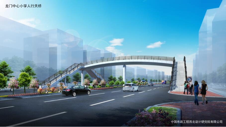 龍門(mén)中心小學(xué)人行天橋位于羅龍西路龍門(mén)中心小學(xué)西側約80米,主梁采用鋼箱型連續梁,腹板為圓弧形,主梁全長(cháng)33.8米,寬4米。梯道坡度1:2,長(cháng)16.9米、寬米,中間設置緩步平臺??偼顿Y約400萬(wàn)元。