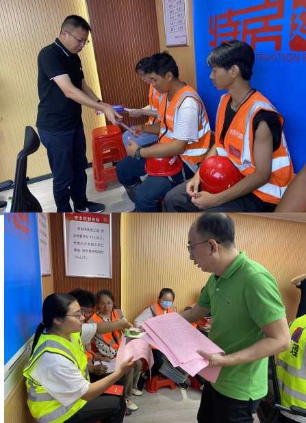 會(huì )后,黨支部書(shū)記、副董事長(cháng)、總經(jīng)理孔華修海金副總經(jīng)理分別向項目部人員及工人現場(chǎng)分發(fā)安全生產(chǎn)月宣傳單及“五進(jìn)”等宣傳資料。