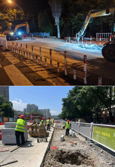 小溪路口地處老城區、蓮東片區、新城區交界處,群眾反映該路口交通標識不清、行人過(guò)街不便等,存在安全隱患,為此,市委、市政府及市住建局等相關(guān)部門(mén)高度重視,決定由市政集團所屬企業(yè)市城投公司對該路段實(shí)施提升改造,重點(diǎn)實(shí)施道路白改黑、雨污分流改造、綠化提升、道路標識完善、交通安全設施提升等建設,項目總投資約3500萬(wàn)元。工程于7月下旬開(kāi)工建設,目前正在進(jìn)行混凝土病害處理、雨水管網(wǎng)開(kāi)挖鋪設、路沿石安裝及各管線(xiàn)遷改等施工作業(yè)。